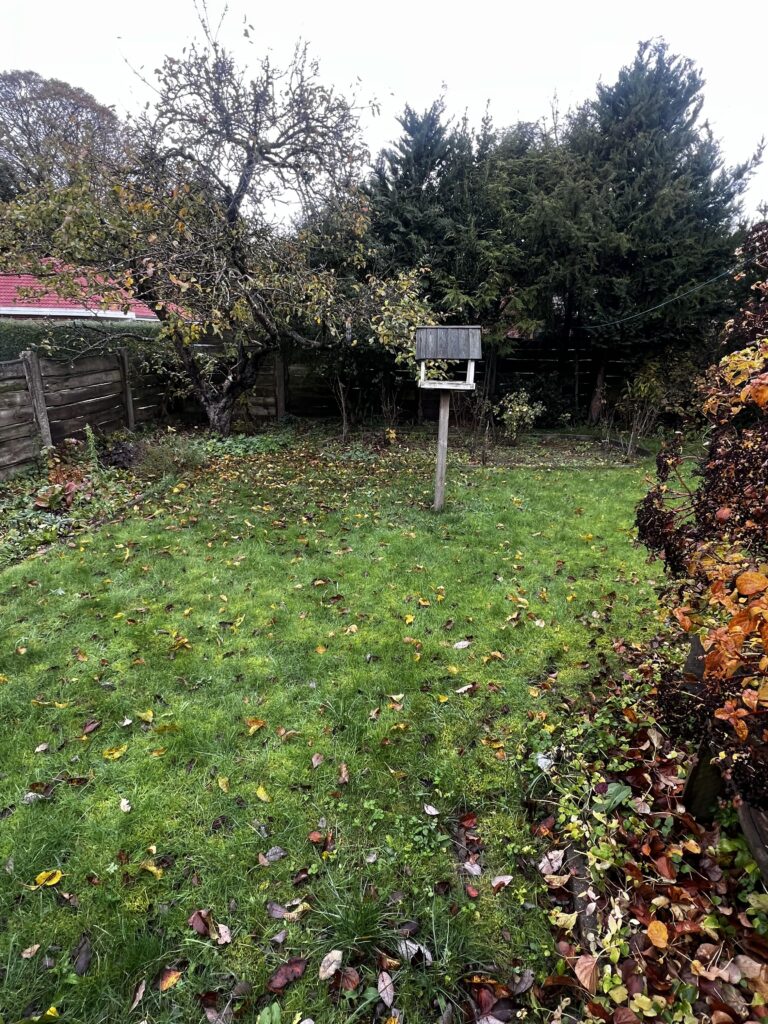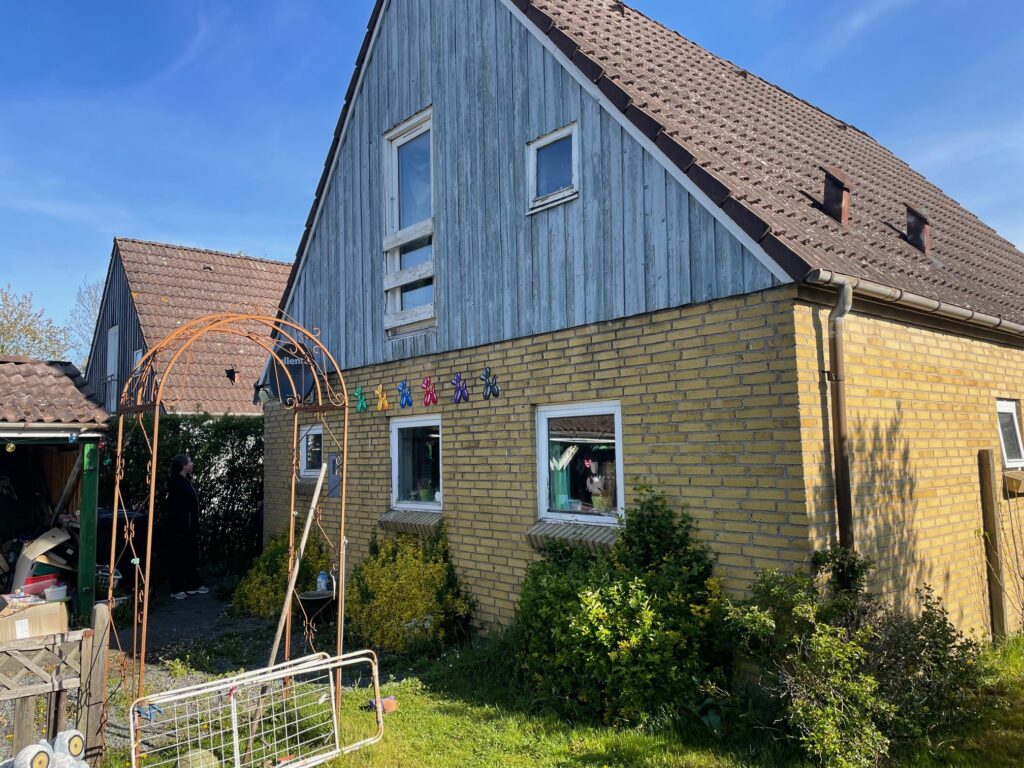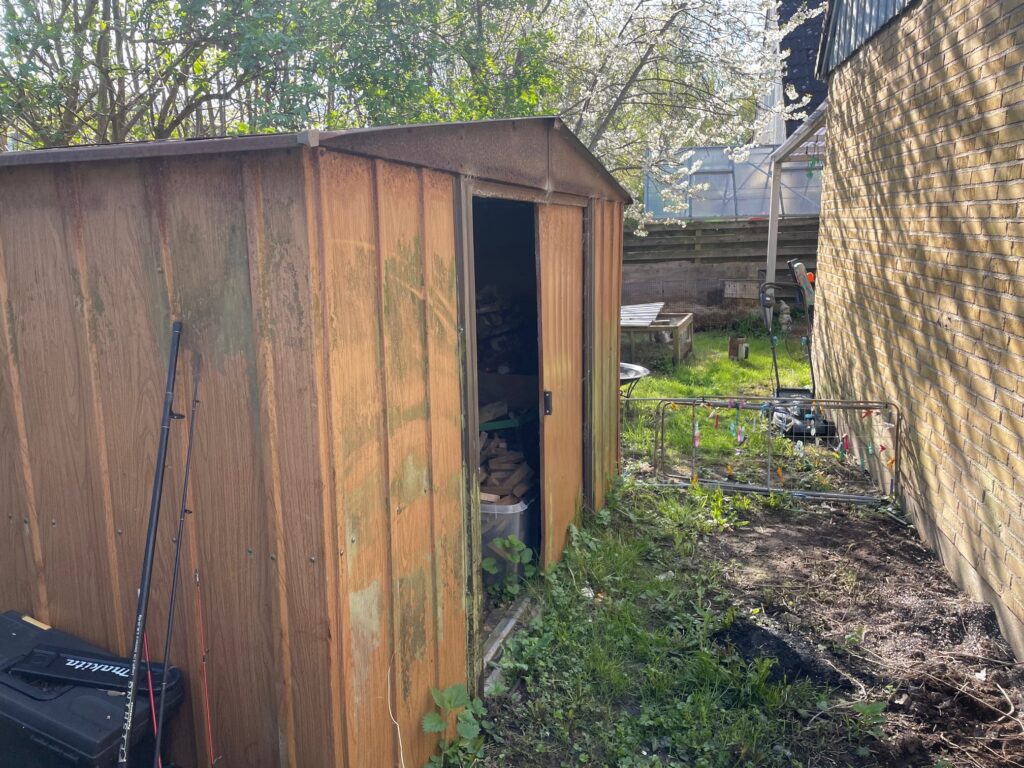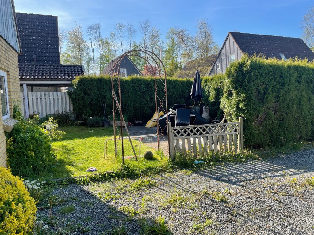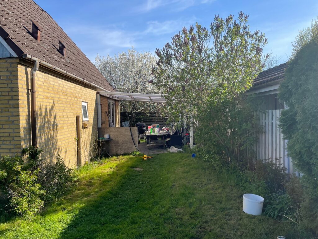 Til ejendommen hører en perlestensbelagt indkørsel, et skur i træ, et skur i stål samt have med græs.