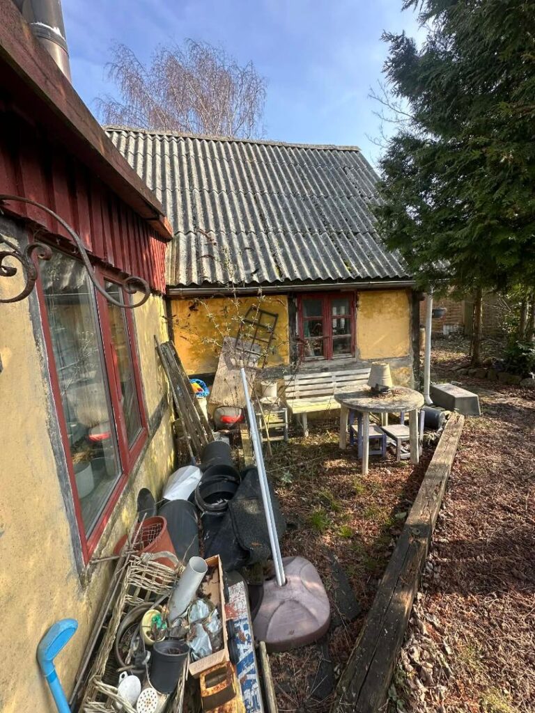 Der ses skimmelvækst enkelte steder, herunder særligt i opbevaringsskab i entre. Ejendommen er p.t. uopvarmet og det vides ikke, hvor længe ejendommen har været uden varme.