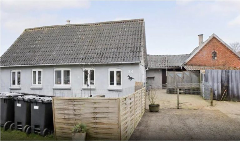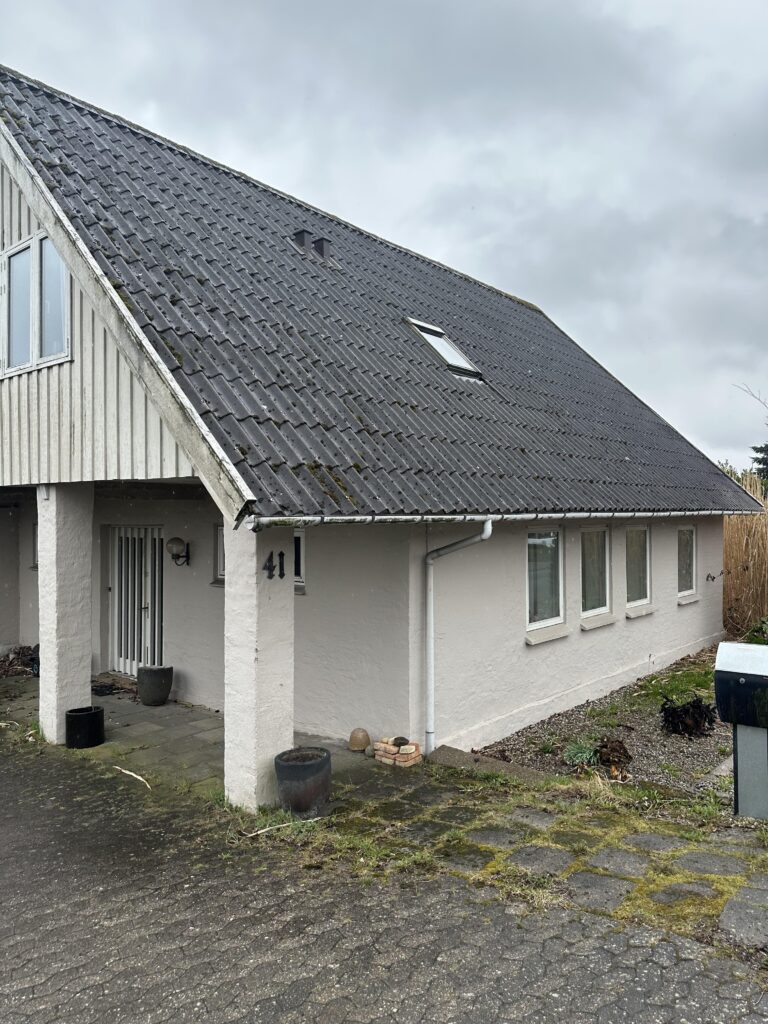 Huset er pudset og malet gråt.