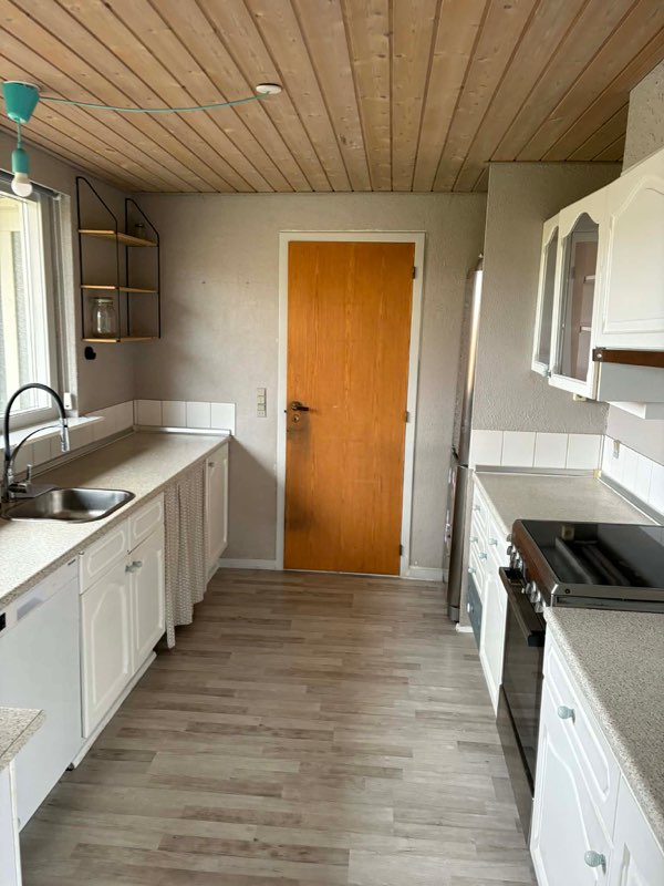 Ved besigtigelsen forefandtes Blomberg emhætte, AEG komfur samt køleskab.