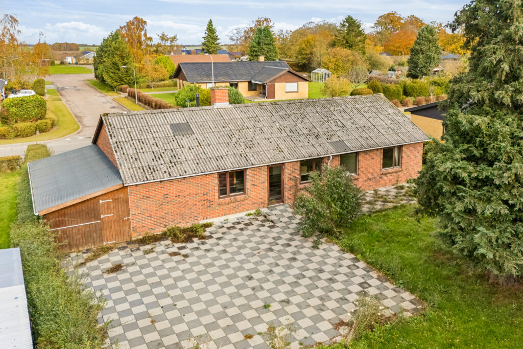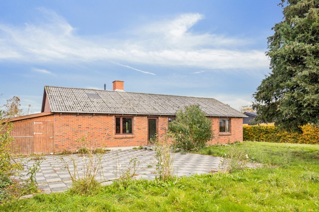 Ejendommen er opført i Letbeton-sten med tagdækning i fibercement herunder asbest.