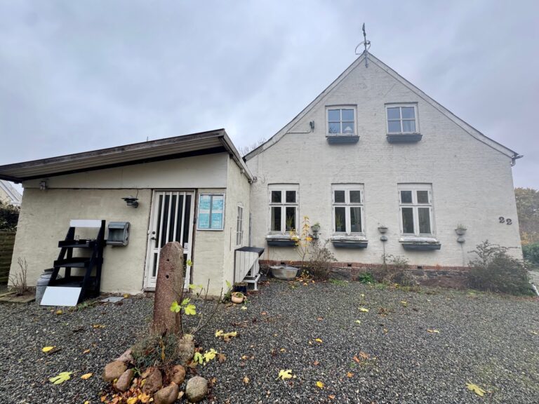 Boligdelen er et pudset murstenshus i 1½ plan med cementtagsten. Huset er opført i 1907 og ombygget i 2002 og senere. Bebyggt areal på 157 kvm., udnyttet første sal 68 kvm, indbygget udhus på 12 kvm og erhvervsareal på 23 kvm, således at boligarealet i alt udgør 190 kvm.