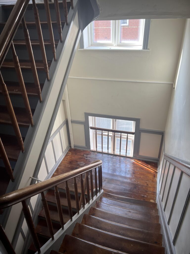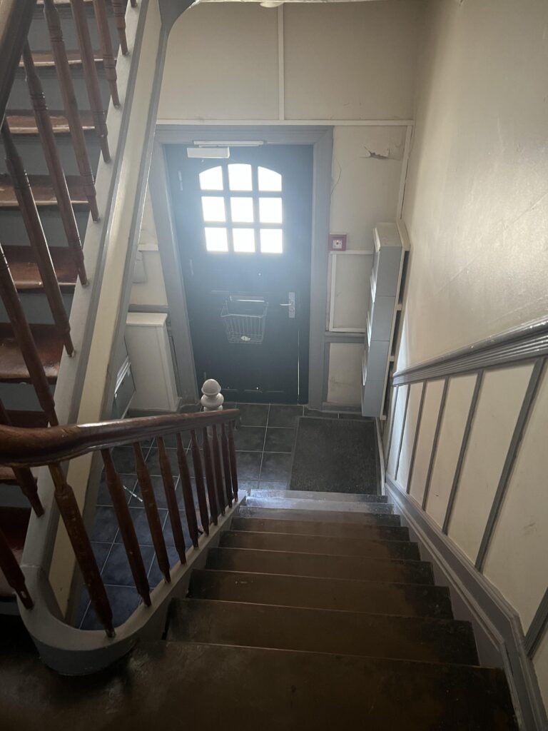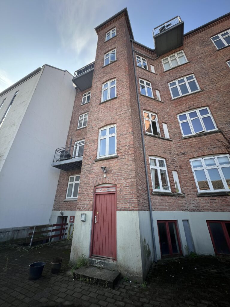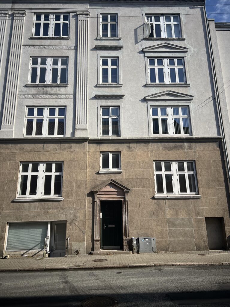 Lejligheden indeholder to indgange henholdsvis hovedindgangen beliggende på forsiden af bygningen ved brug af den almindelige opgang samt bagindgangen fra lejlighedens køkken med indgang omme fra parkeringspladsen fra baggården.