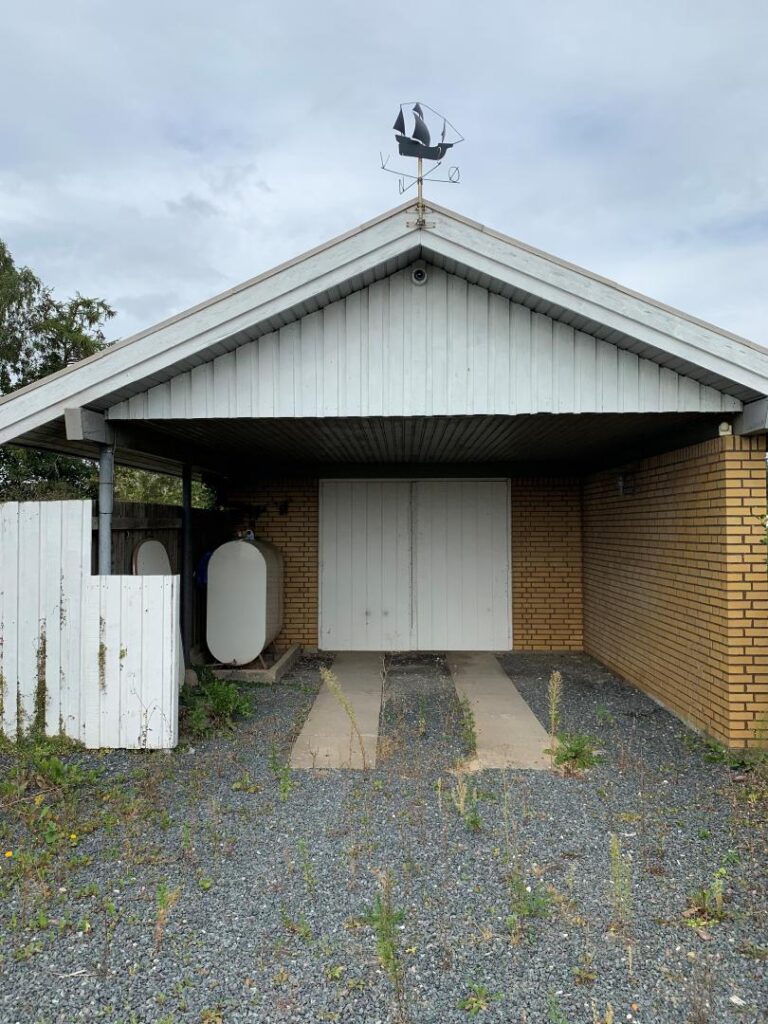 Fritliggende garage i mursten med tagdækning i eternittegl el.lign.