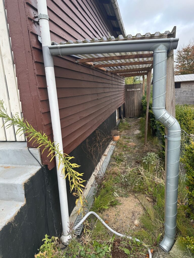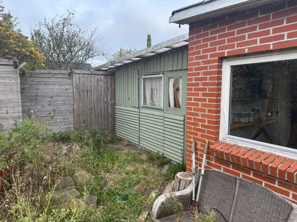 Yderligere er der på ejendommen opført et udhus delvist i mursten og træ.