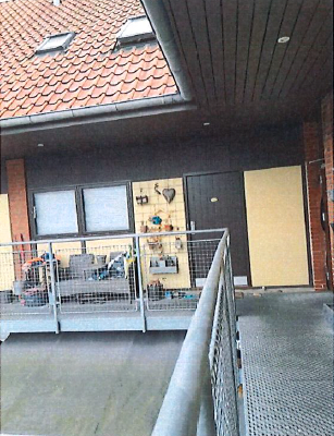 Ved den udvendige trappe er der for tre år siden bygget en terrasse på 18 m2, som er beboernes.