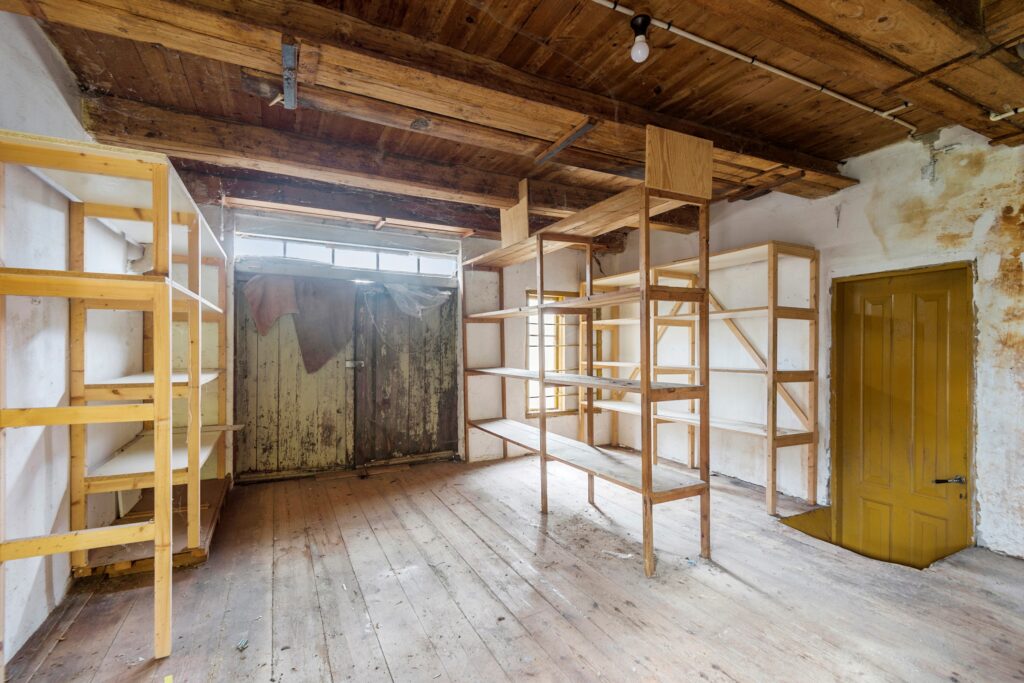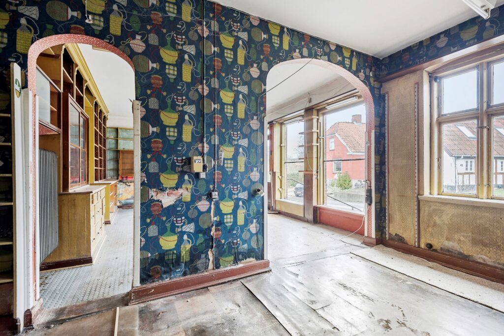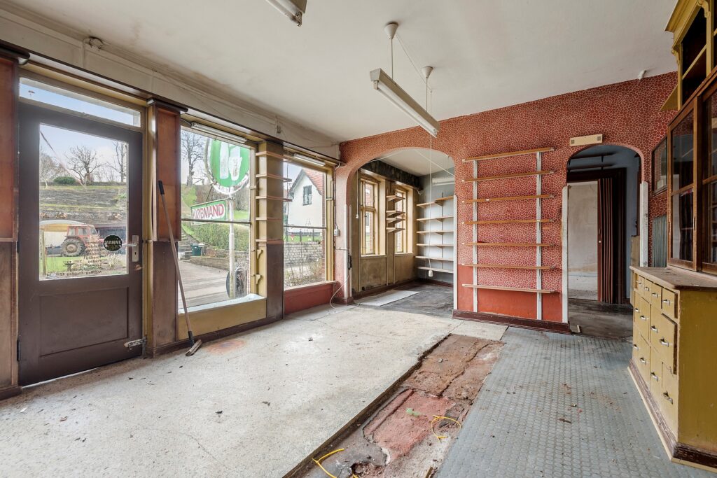 Den tidligere købmandsbutik har været en af de sidste af sin slags i drift, og indretningen er stort set som den var tilbage i 1950. Ejendommen og boligen kræver en totalrenovering både ude som inde. Der er betydelige skader på bygningen og boligen, så projektet kræver en gennemgribende indsats.