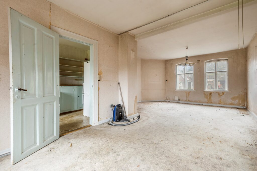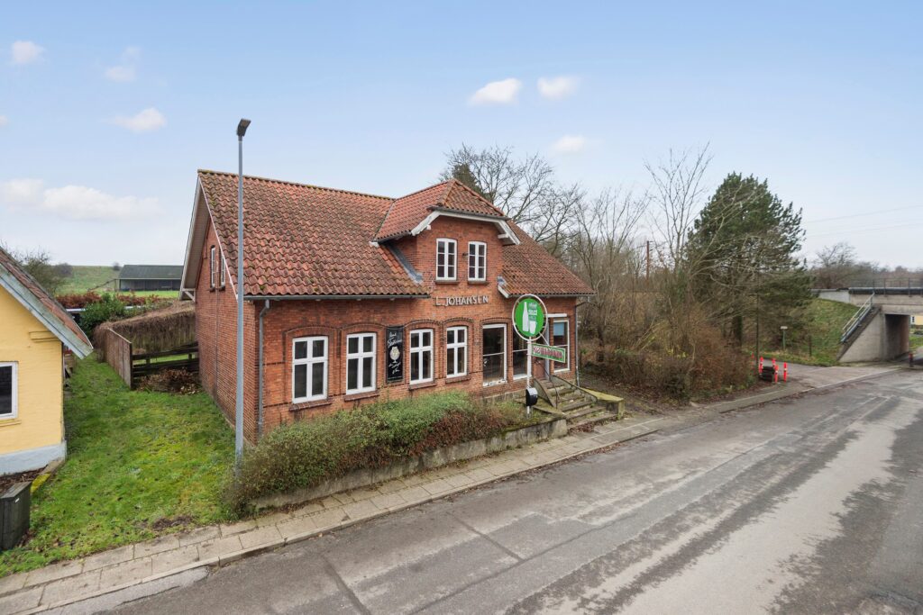Ejendommen har 185 m² fordelt på bolig og erhverv. Grunden er 1.269 m², hvilket giver mulighed for at udvikle et helt nyt projekt og er derfor velegnet til køber med mod på et større renoveringsprojekt.
