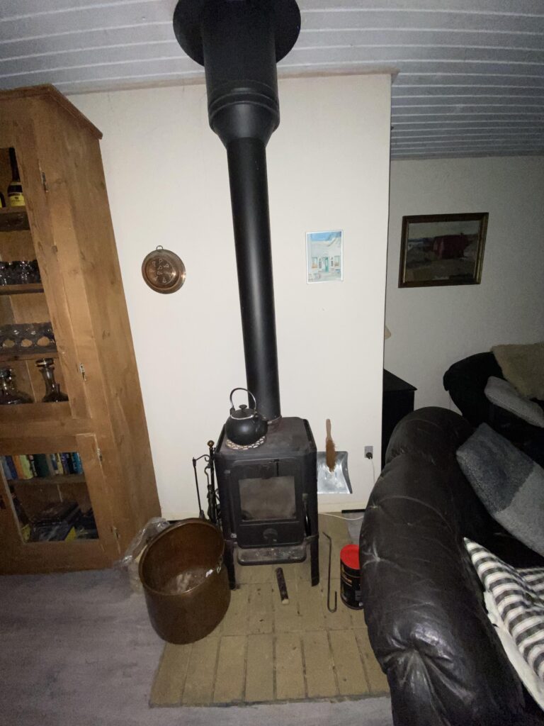 Ejendommen opvarmes ved oliefyr samt brændeovn.