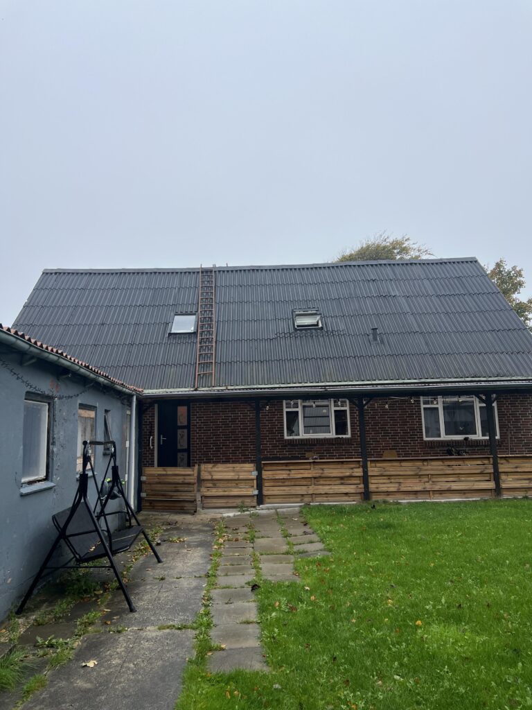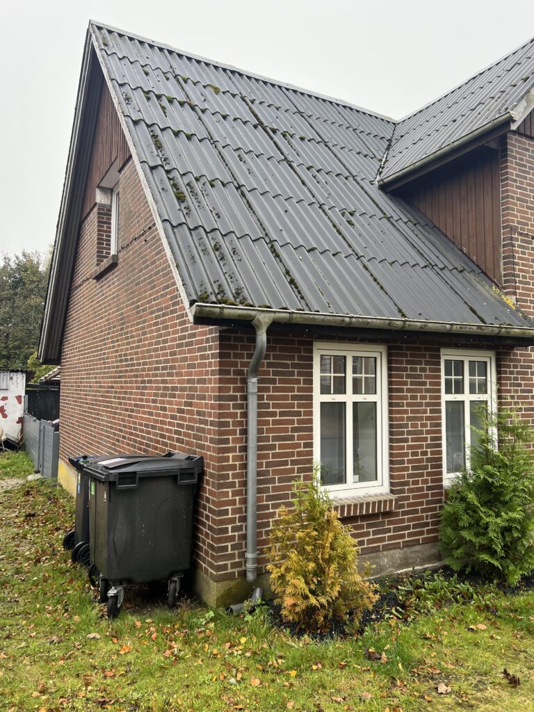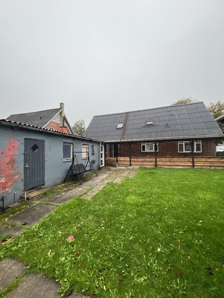 Boligen indeholder to indgange henholdsvis på forsiden af huset ud til hovedvejen og omme fra haven.