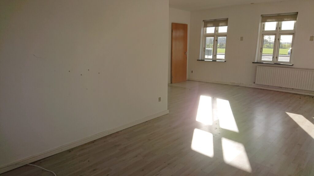Ejendommen har loftsbeklædning af bl.a. gips og træloft samt gulvbelægning af bl.a. klinker, linoleum og faste tæpper.