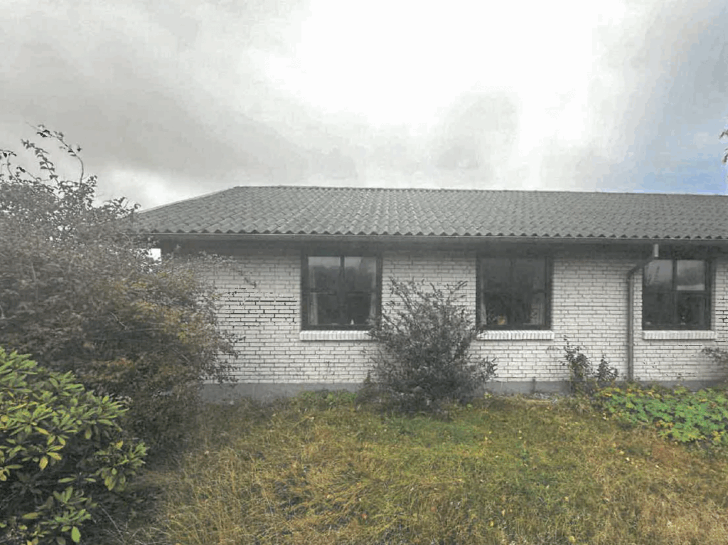 Ejendommen består af entré, fordelingsgang, gæstetoilet, badeværelse, fire værelser, bryggers, køkken og stor stue. Til ejendommen er en carport med indbygget depotrum samt et skur i haven.