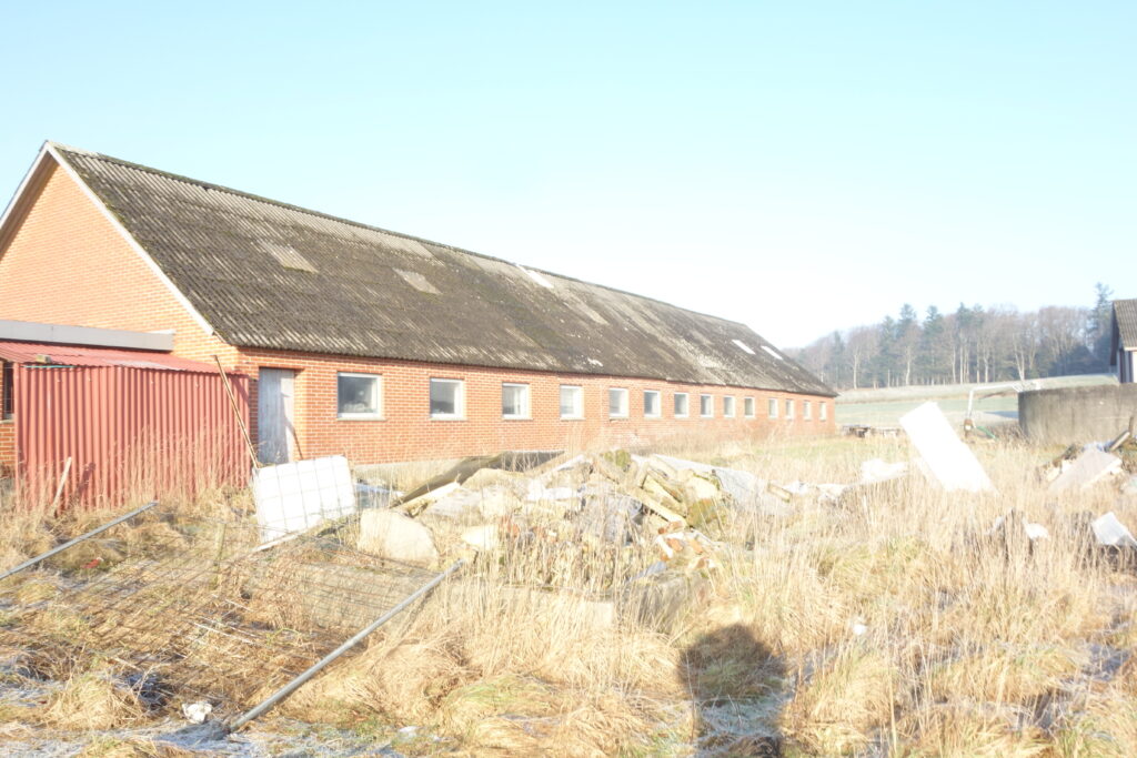 Ifølge BBR er bygningen opført i 1961 i røde mursten med eternittag med asbest. Om/tilbygget i 1978. Bebygget areal ifølge BBR andrager 407 m2. Båse til kvæg er nedrevet og loftet er understøttet af jernbjælker. Betongulv, der stadig er med udmugningsrende.