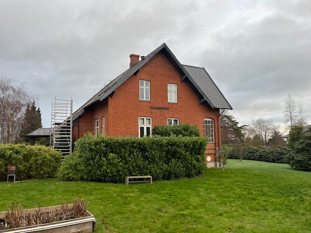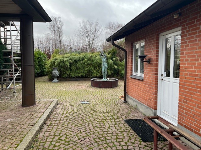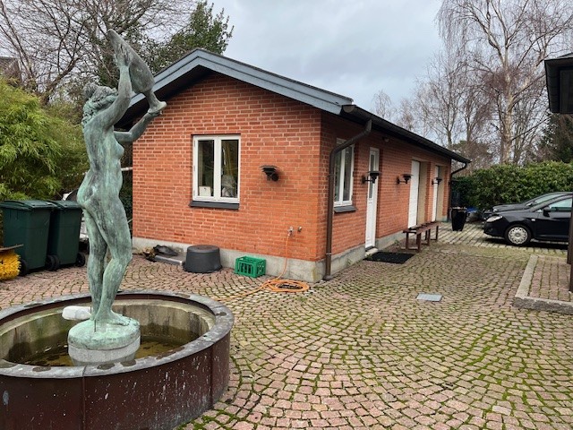 Fyrrum opført 2001, 19 m². Ydervægge røde mursten. Hældningstag med tegl. Varme via naturgas og fyret leverer også varme til hovedbygning. Gulvvarme.