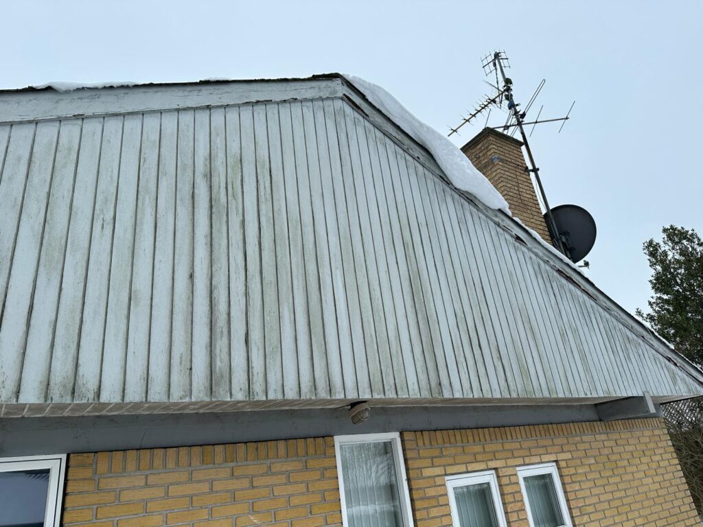 Ejendommen er opført i gule mursten, og tagdækningsmateriale er i henhold til BBR-ejermeddelelsen fibercement indeholdende asbest.