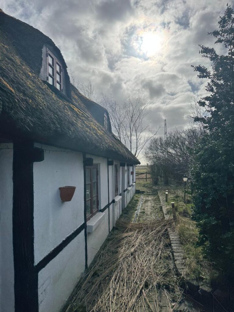 Fritliggende enfamiliehus opført i 1875 med om-/tilbygning i 1985 med ydervægge af bindingsværk og tagdækning af stråtag.