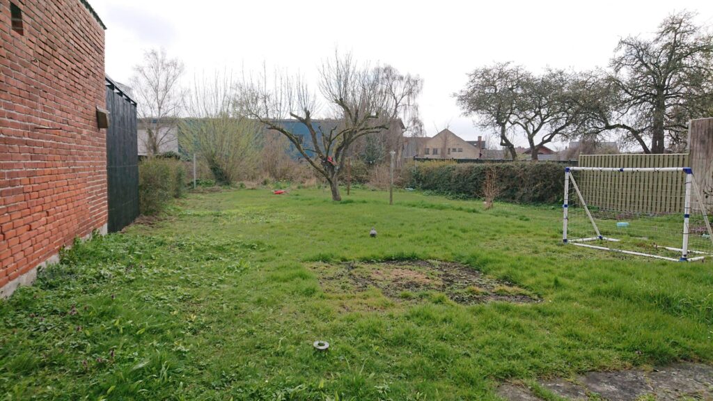 Have med græs samt et udhus på 18 m².