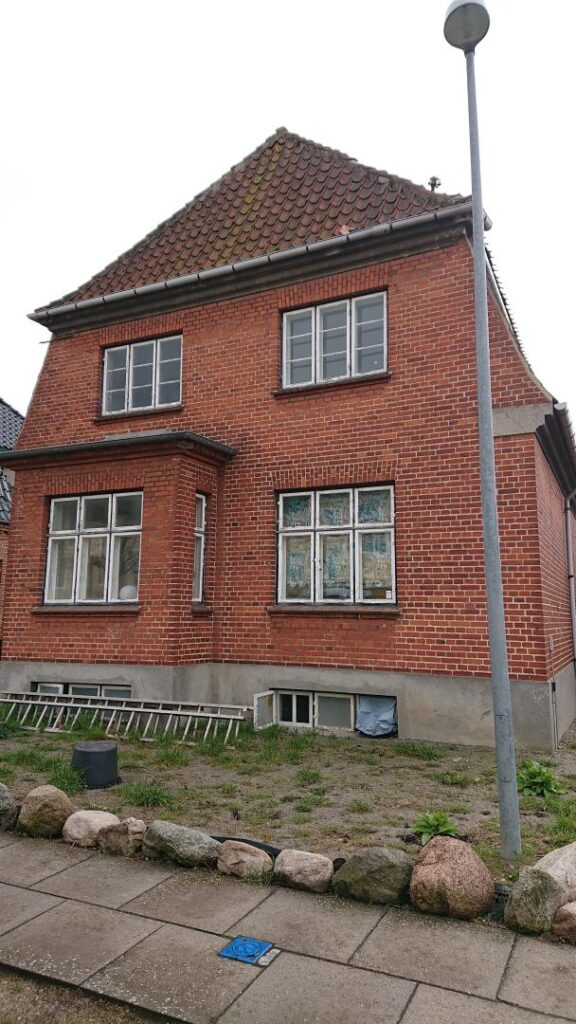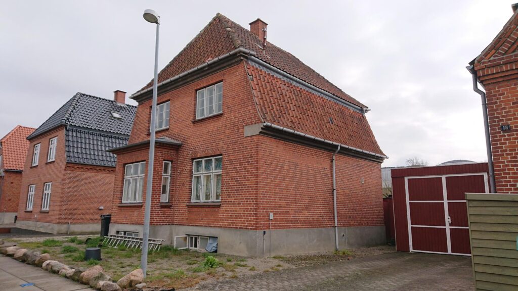 Fritliggende enfamilieshus beliggende i byzone opført i 1923 i 1½ plan med ydervægge af røde mursten, tagdækning af teglsten og med ældre termovinduer.