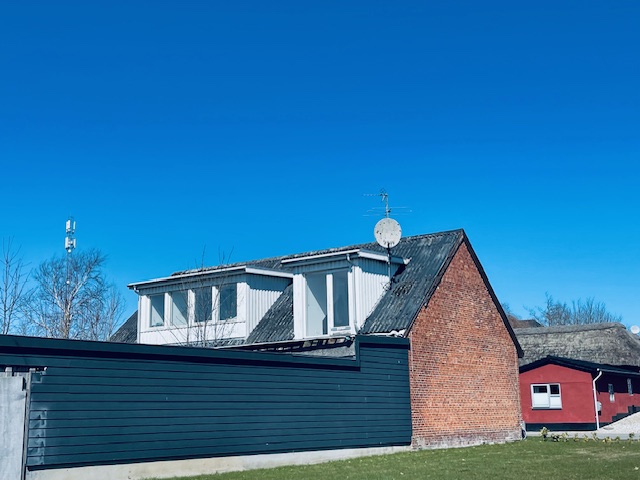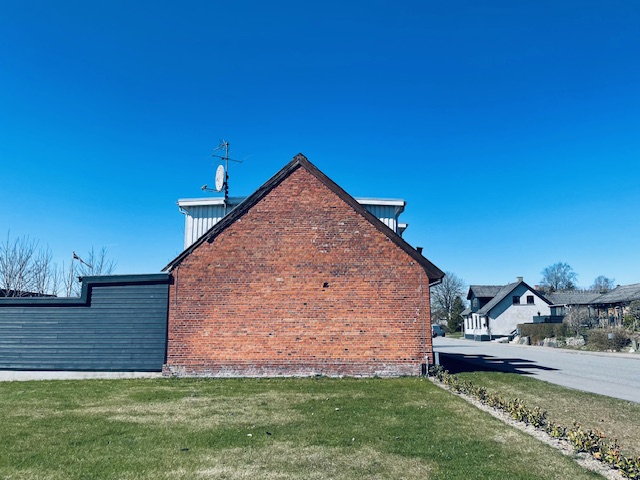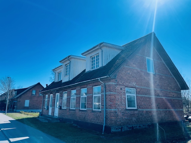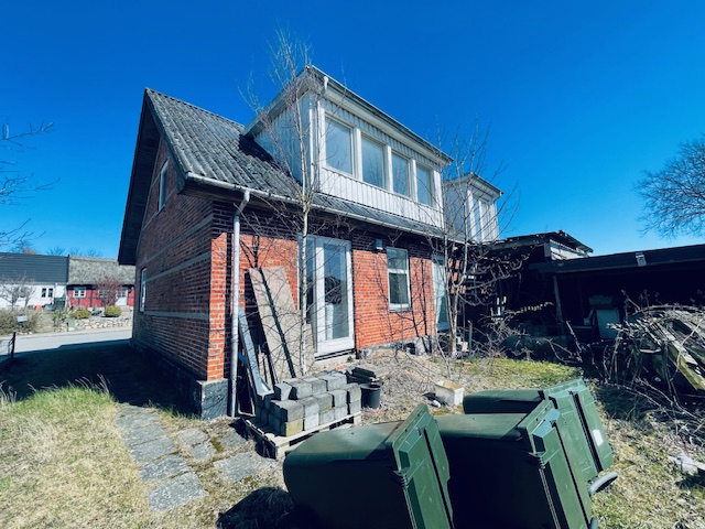 Ældre rødstenshus med fibercementtag, herunder asbest. Ifølge BBR-ejermeddelelsen er bygningen